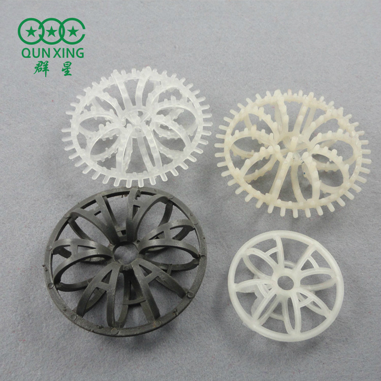 塑料花環(huán)填料主要利用其獨(dú)D特結(jié)構(gòu)形狀多分布點(diǎn)與接觸表面積,與廢氣或廢液呈點(diǎn)接觸,以去Q除氣體和液體中的微粒,吸收有害的腐蝕性氣體。使用時(shí)將液體或氣體反方向道入填料填充床內(nèi),氣體經(jīng)過分配板,將氣體平均分布于球狀填料中,每只呈點(diǎn)接觸,利用接觸的表面積,除氣體和液體中的微粒吸收有害的氣體。這種填料是由許多圓環(huán)結(jié)繞而成,由于填料的空隙處能有較高的持液量,可使塔內(nèi)液體的停留時(shí)間較長,從而增加了氣液兩相的接觸時(shí)間,提高了填料的傳質(zhì)效率。